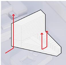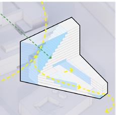 De getrapte vorm van SAWA is geen autonoom architectonisch gebaar, maar het resultaat van een samenhangende ontwerpstrategie. Bij de ontwikkeling van SAWA is bewust gekozen om niet het maximale bouwvolume van het bestemmingsplan te benutten om zo het volume te laten reageren op context, zonlicht, zichtlijnen en gebruik en deze randvoorwaarden te vertalen naar een gebouw dat zowel stedelijk als menselijk is.