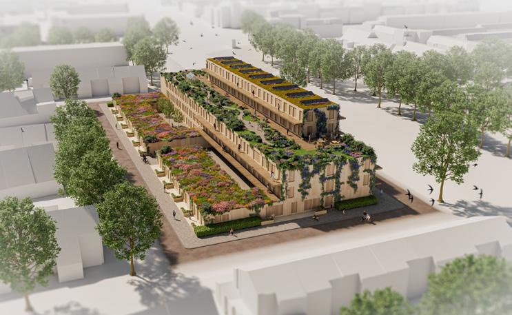 Door te verdichten op basis van circulaire bouwprincipes wordt binnenstedelijk bouwen geherdefinieerd. Met lichte houtconstructies wordt meer volume teruggebracht na sloop, waarbij bestaande fundering wordt hergebruikt en aanwezige materialen worden geoogst en hergebruikt als droge ballast voor CLT-vloeren. Het resultaat is een circulaire bouwmethode die meer woningen toevoegt, de CO2 uitstoot reduceert en bouwkosten bespaart.