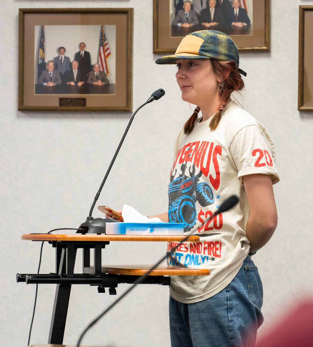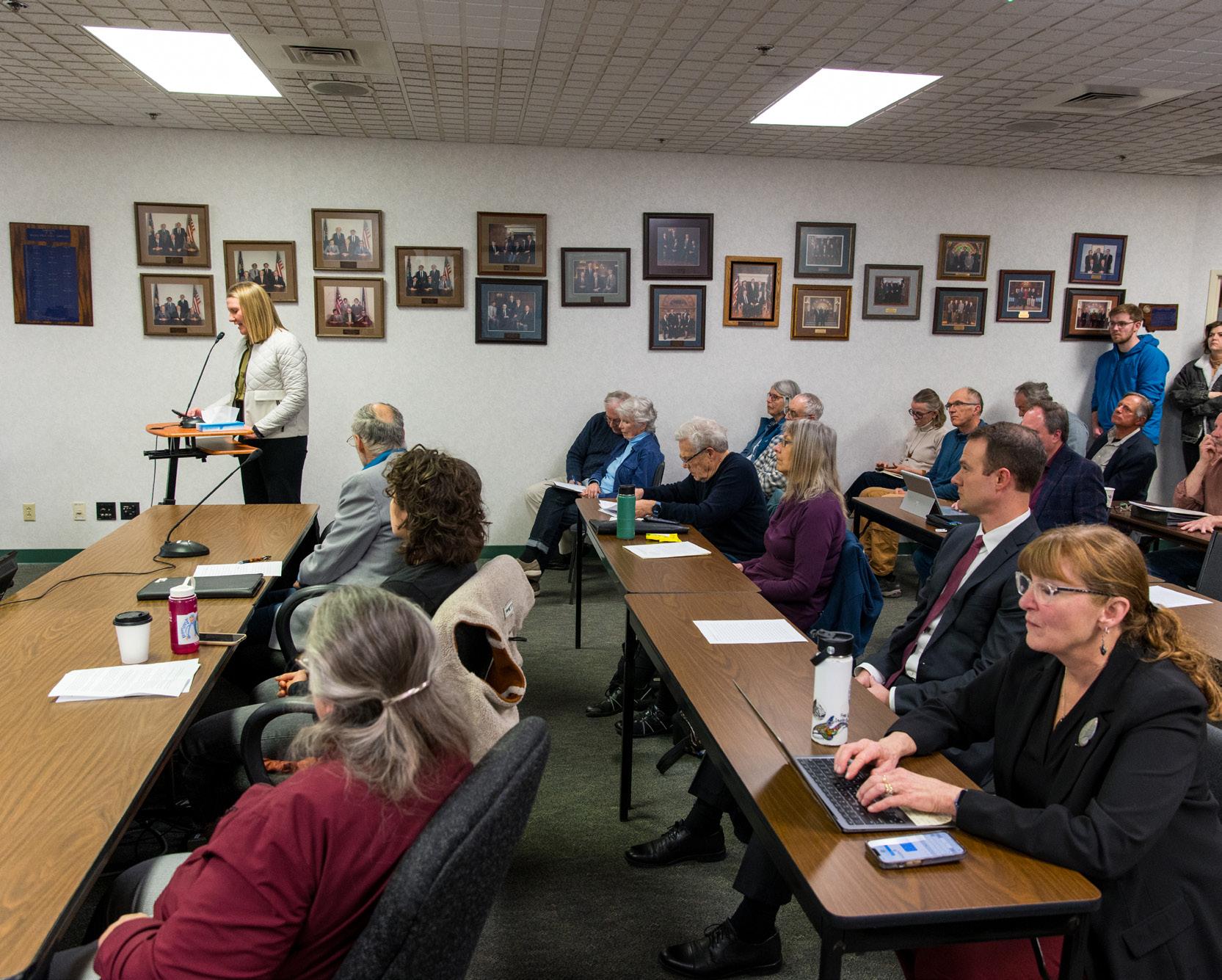A high school student gives comment at a PSC meeting in February. If NorthWestern gets its way, the public will lose its ability to participate in the development of NorthWestern's plan.