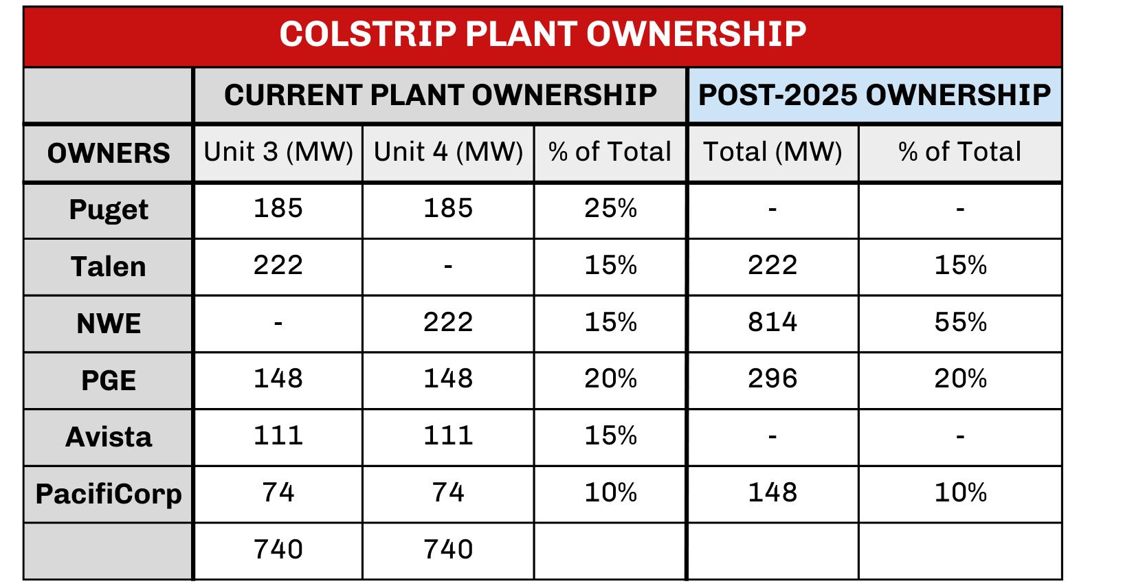 In January 2023, NorthWestern announced its intent to double its share of the Colstrip plant by acquiring Avista Energy’s 15% share. In July 2024, months after a highly touted deal with Talen fell through, NorthWestern announced it had agreed to acquire Puget Sound Energy’s (Puget) 25% share. Both acquisitions will increase NorthWestern’s share of the plant from 222 megawatts to a whopping 814 megawatts – providing NorthWestern with far more power than its resource plans have projected needing for decades.