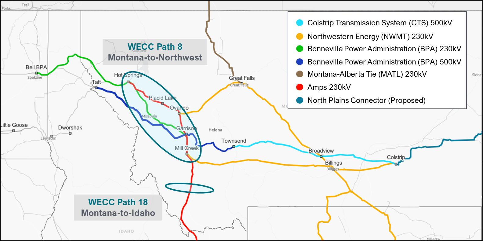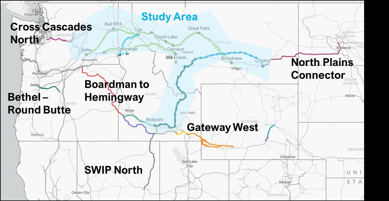 This study focuses on Montana’s high-voltage transmission system (>200 kV) and its primary interfaces with the Pacific Northwest and Idaho. Specifically, the analysis covers: