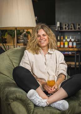 Frieda Lekscha alias Geeske in ihrem Borkumer Strandrestaurant, in dem die selbstentwickelte GetränkeRange „Mointz“ zu den Bestsellern gehört.