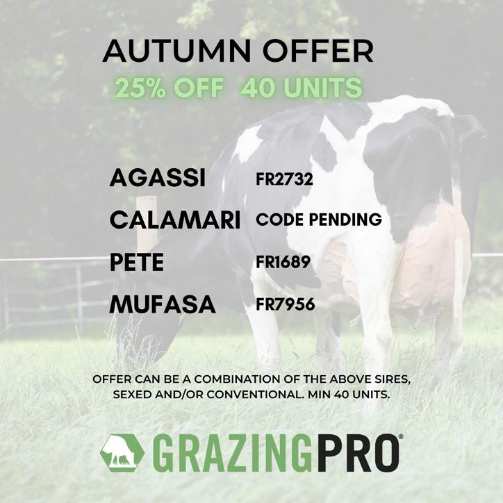 GrazingPRO sires improve the profitability of grassbased production systems by transmitting greater longevity, improved mobility, moderate stature, greater component yields and superior production - all while not compromising Daughter Pregnancy Rate (DPR) and Somatic Cell Score (SCS).