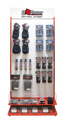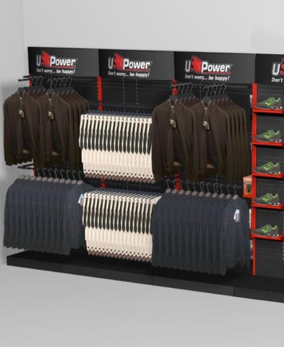 To best show the U-POWER Wear Collection we have developed specialised display areas for use within trade counters and retail shops. With this in mind we have designed a modular display solution capable of increasing the visibility of the product and to promote sales. The Shop in Shop is available in different solutions.