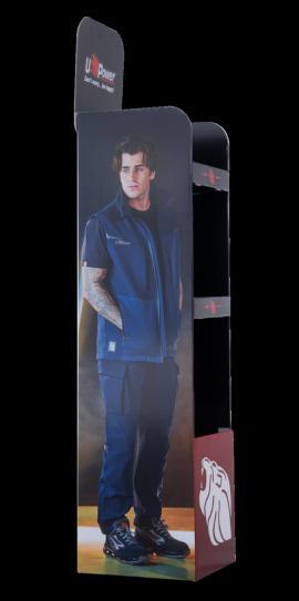 To best show the U-POWER Wear Collection we have developed specialised display areas for use within trade counters and retail shops. With this in mind we have designed a modular display solution capable of increasing the visibility of the product and to promote sales. The Shop in Shop is available in different solutions.