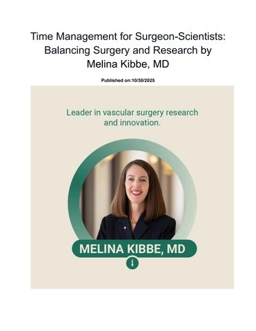 For surgeon-scientists, time often feels like the rarest resource Balancing clinical duties with demanding research schedules can be overwhelming, but it is essential for advancing patient care and scientific discovery Mastering time management as a surgeon-scientist requires discipline, planning, and prioritizing effectively. Success depends on how hard one works and how efficiently each hour is used as noted by Melina Kibbe, MD.