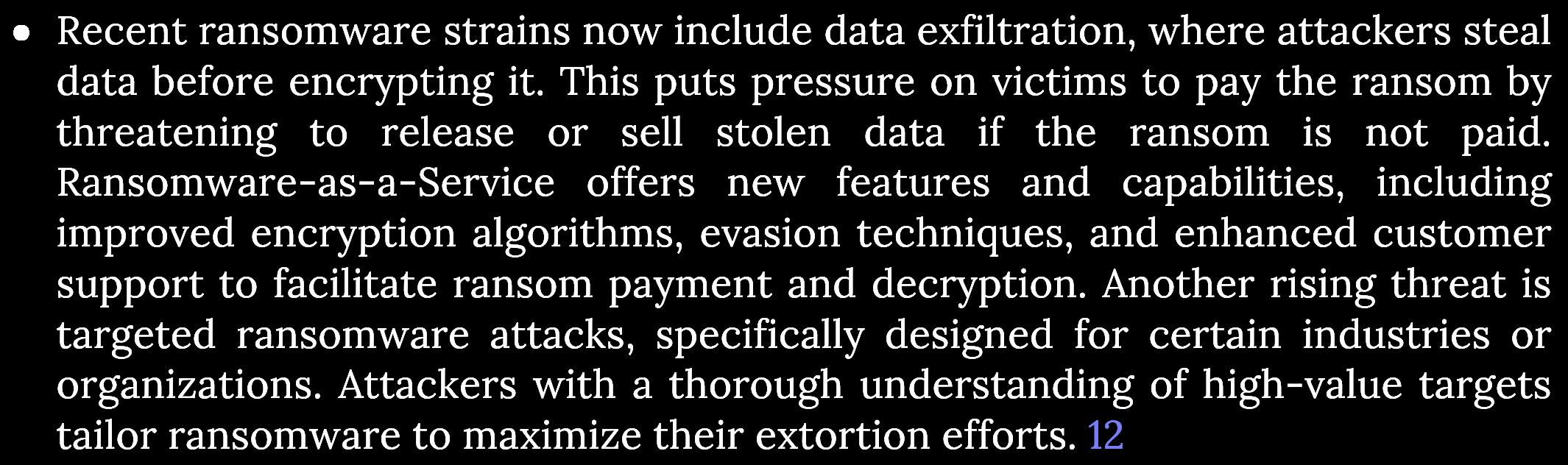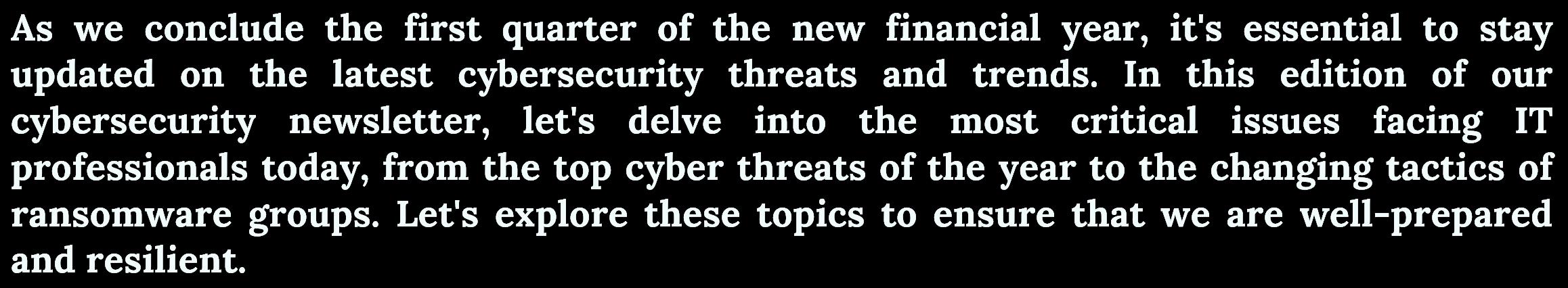 In 2023, we witnessed a rapidly evolving cybersecurity threat landscape. This trend continues to grow, with existing attacks changing and new, more sophisticated threats emerging. As we enter 2024, the widespread use of Artificial Intelligence (AI) by cybercriminals requires organizational vigilance. Here are the top threats to watch for in 2024: