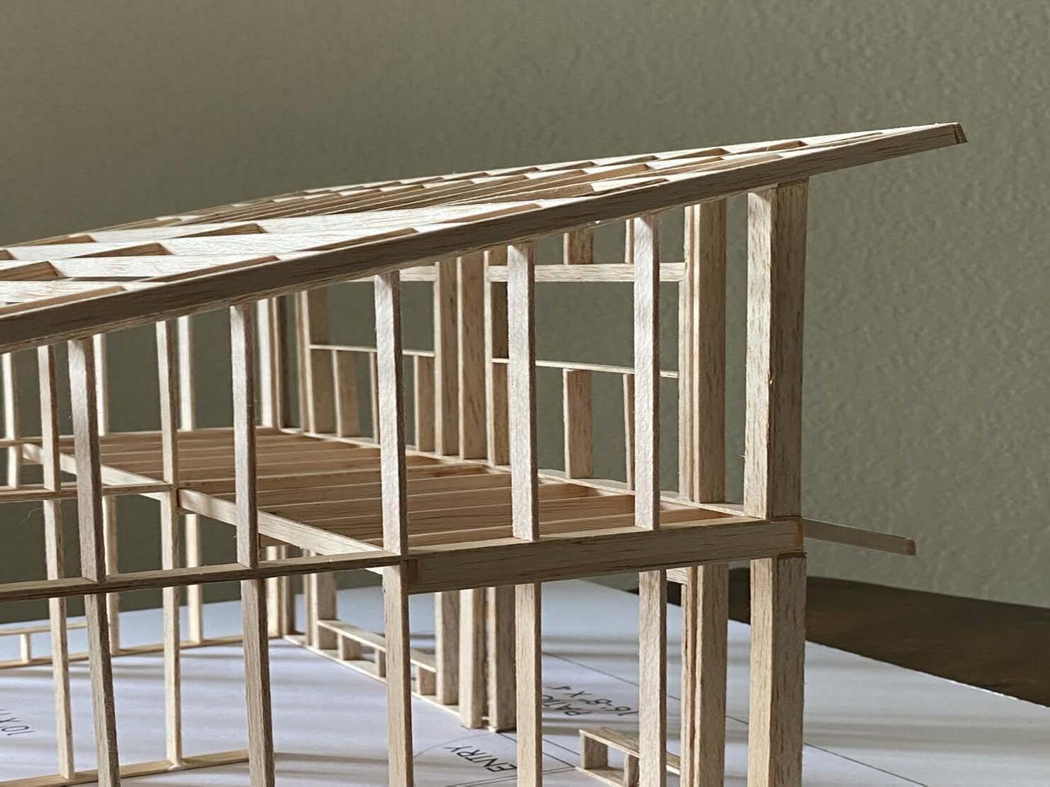 Drafted the framing plans of a chosen floor plan and used balsa wood to make a scaled framing model.