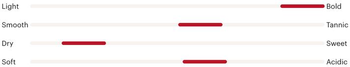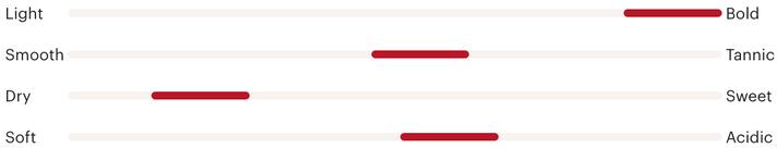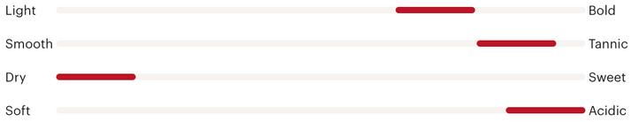 Complex and layered, offering notes of ripe red cherries, dried roses, tar, leather, and hints of truffle. Subtle spice and earthy undertones add depth. Full-bodied and structured with firm tannins, yet well-integrated. Flavors of dark cherry, plum, and licorice lead into a long, persistent finish with notes of tobacco and balsamic hints.