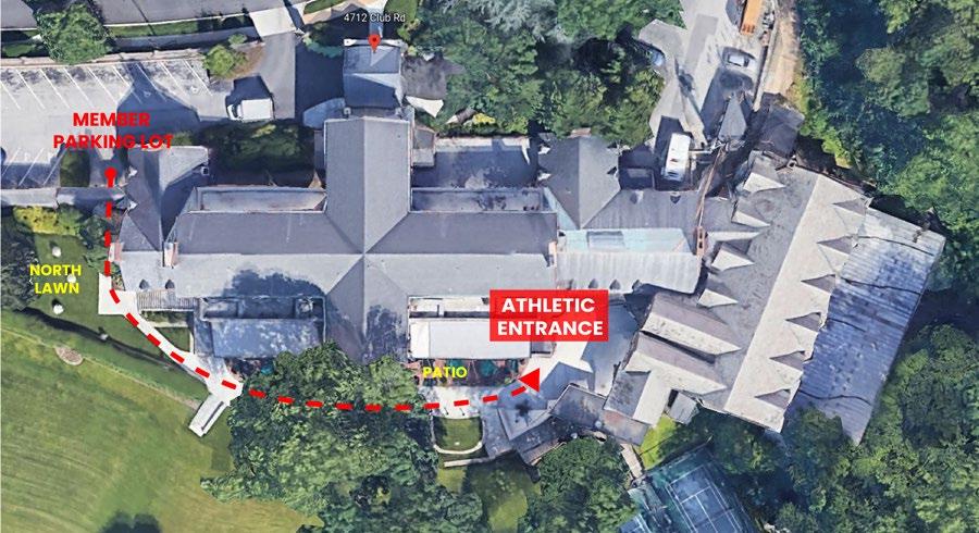 In order to maintain a pleasant dining experience for all members, it is requested that members intending to use our Squash, Fitness, or Paddle facilities access these facilities through the Athletic Entrance. The Athletic Entrance can be accessed outdoors from the Patio (between the 1898 Grille and the fitness hallway.