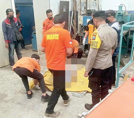 Surabaya, Memorandum Karyawan pergudangan di Jalan Gading Pantai dibuat geger atas kematian Oldy Olivia Timbuleng, Kamis (13/10) siang. Pria 45 tahun asal Jalan Lebak Jaya II Utara itu meregang nyawa dengan kondisi leher tergantung di besi pilar bangunan menggunakan tampar biru.