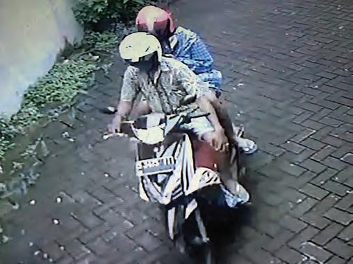 Setelah pagar rumah berhasil dibuka, dua terduga pelaku secara bergantian masuk ke rumah tersebut. Tak lama, kedua terduga pelaku kembali keluar rumah dan terlihat kebingungan. Setelah sekitar satu menit berdiri di jalan kampung, mereka lalu meninggalkan