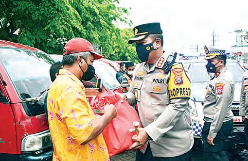 Selain mengedukasi masyarakat di Pasar Sukodono, sosialisasi tertib lalu lintas dalam rangka Operasi Zebra Semeru yang dihadiri Kapolresta Sidoarjo Kombespol KusumoWahyu Bintoro ini juga membagikan bantuan sosial berupa paket sembako ke sopir angkutan umum, driver ojek online, tukang becak, juru parkir, pedagang, dan masyarakat yang membutuhkan.