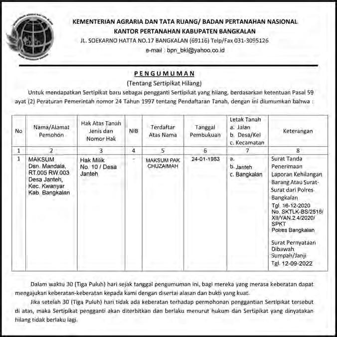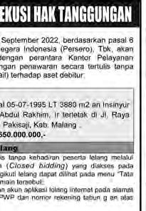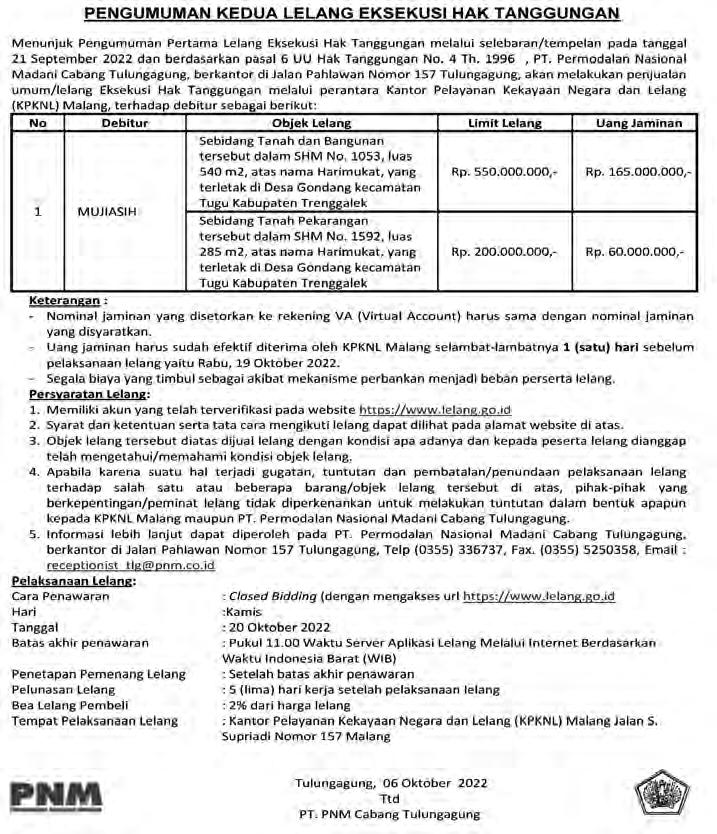 PENGUMUMAN KEDUA LELANG EKSEKUSI HAK TANGGUNGAN