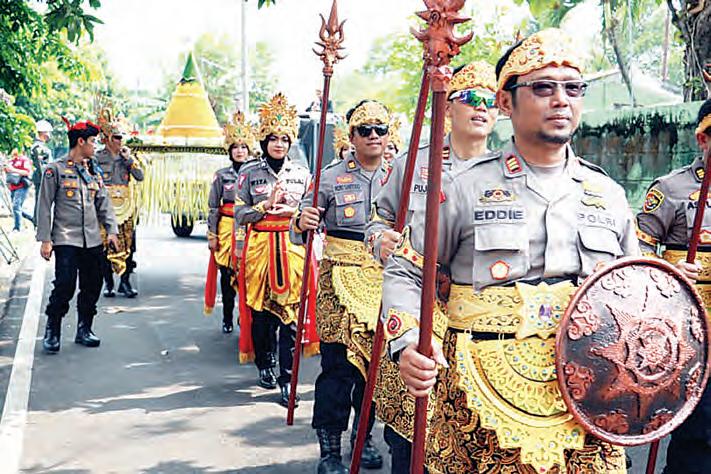 Karenanya, kapolres berharap dengan mengusung tema Majapahit dan Gajahmada dengan pakaian yang digunakan ingin menunjukkan bahwa sinergitas dan solidaritas yang dibangun antara TNI-Polri, pemerintah kabupaten (pemkab) maupun pemerintah kota (pemkot) sangat luar biasa Sesuai tema HUT TNI ke-77 yakni TNI adalah KITA, Kapolres Mojokerto Kota memberikan gambar-