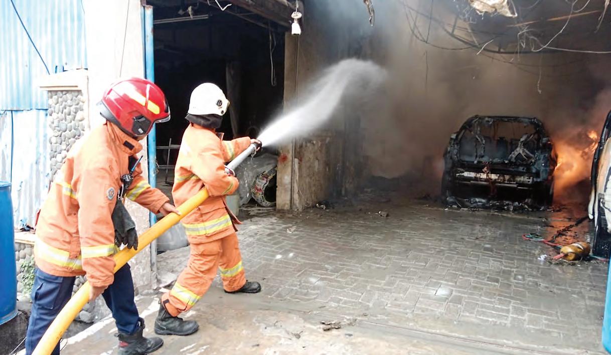 Surabaya, Memorandum Kebakaran hebat terjadi di bengkel mobil di Jalan Barata Jaya XVII, Kamis (6/10) sore. Akibat kejadian tersebut, seluruh bangunan ludes dilalap api. Selain itu, tiga mobil di dalamnya turut terbakar.