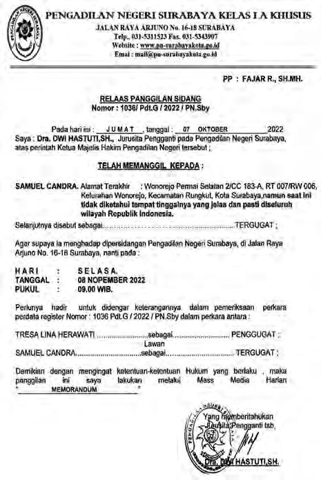 kan perkara tersebut, yaitu Guntur Arief Witjaksono dan Betty Retnosari.