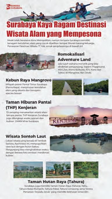 Selain destinasi wisata alam, Wali Kota Eri Cahyadi mengungkapkan, bahwa masih banyak lagi spot-spot lain di Surabaya yang dapat digunakan sebagai tempat liburan bersama keluarga. Mulai dari kawasan kota tua, wisata susur Sungai Kalimas hingga Kebun Binatang Surabaya (KBS).