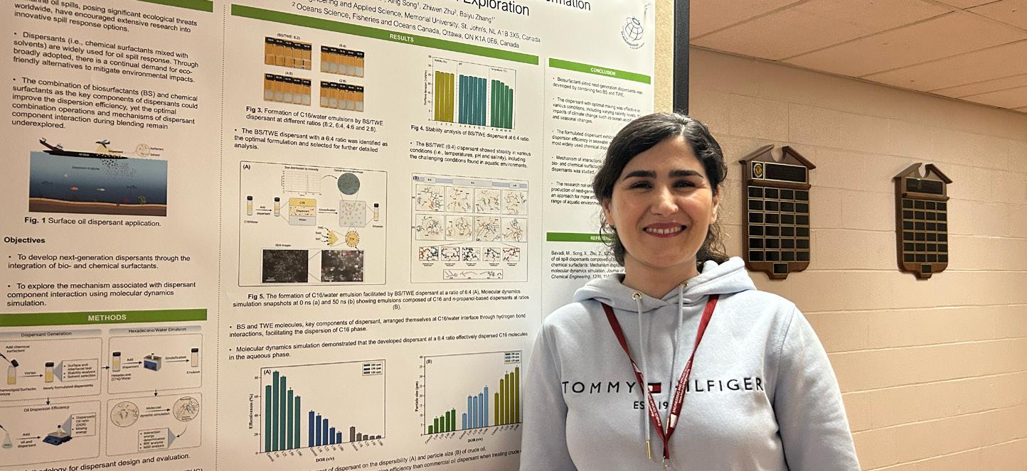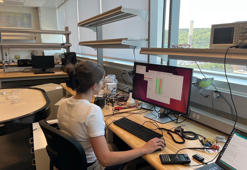 digital twins to enable smarter, more resilient infrastructure. Dr. Jonathon Anderson is helping to secure marine industry technologies against emerging cybersecurity threats, and Dr. Kelly Hawboldt continues to lead in transforming industrial waste into valuable bioproducts to support circular economies in northern and remote communities. You will also read about Dr. Liam Morrissey’s atomic modeling of space weathering, Dr. Ting Zou’s bio-inspired robotics, Dr. Wei Qiu’s work on reducing propeller noise, and Dr. Yahui Zhang’s work on using resins to efficiently separate metals from water and waste