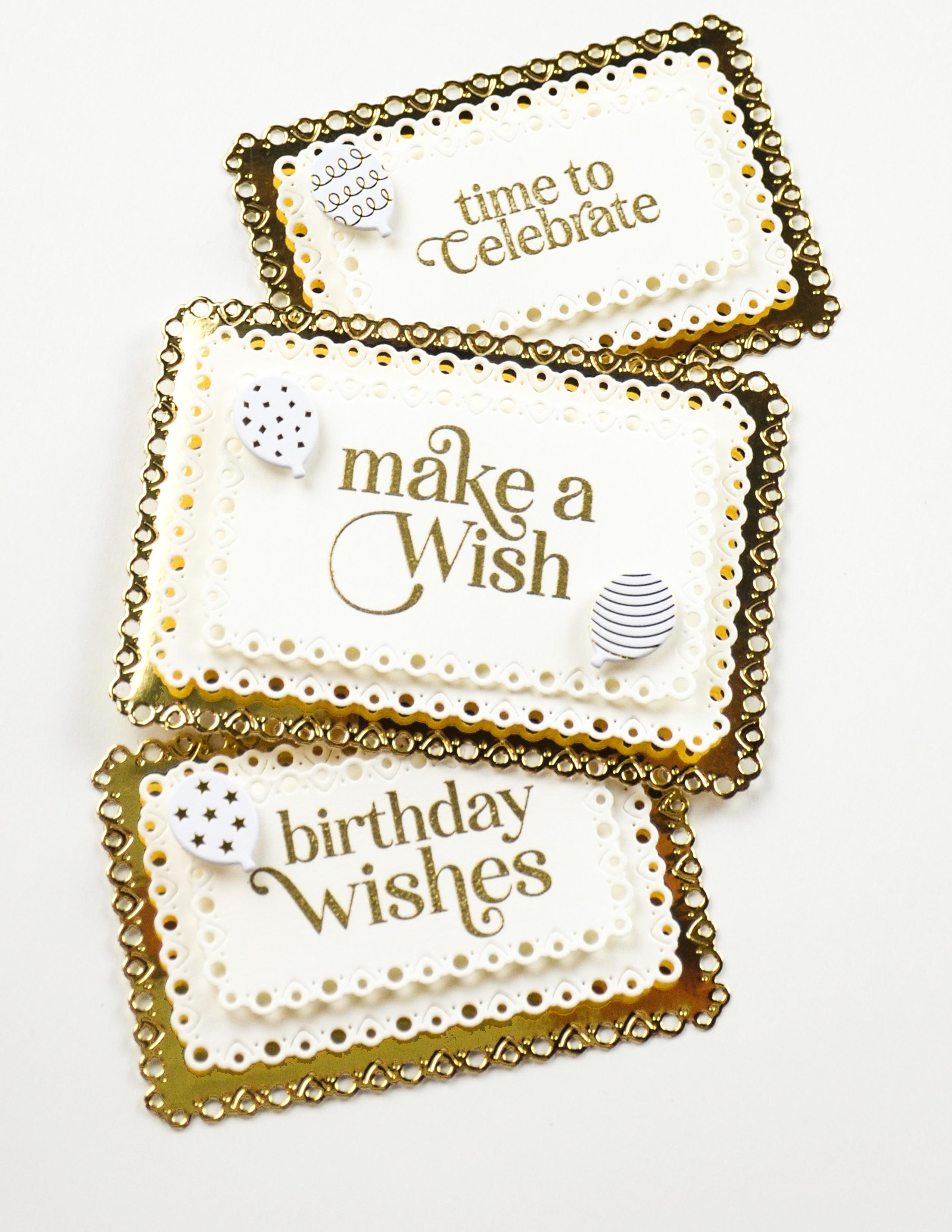 Happy Birthday Foil Greeting White Tags 94962 Notched Eyelet Frames