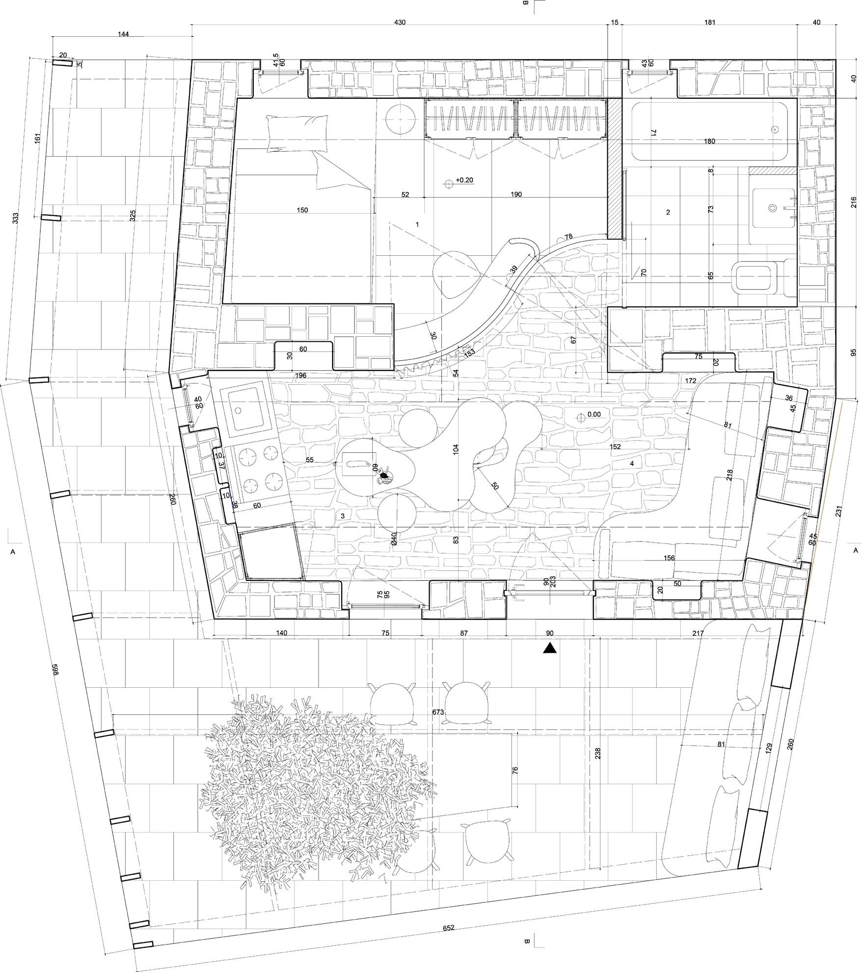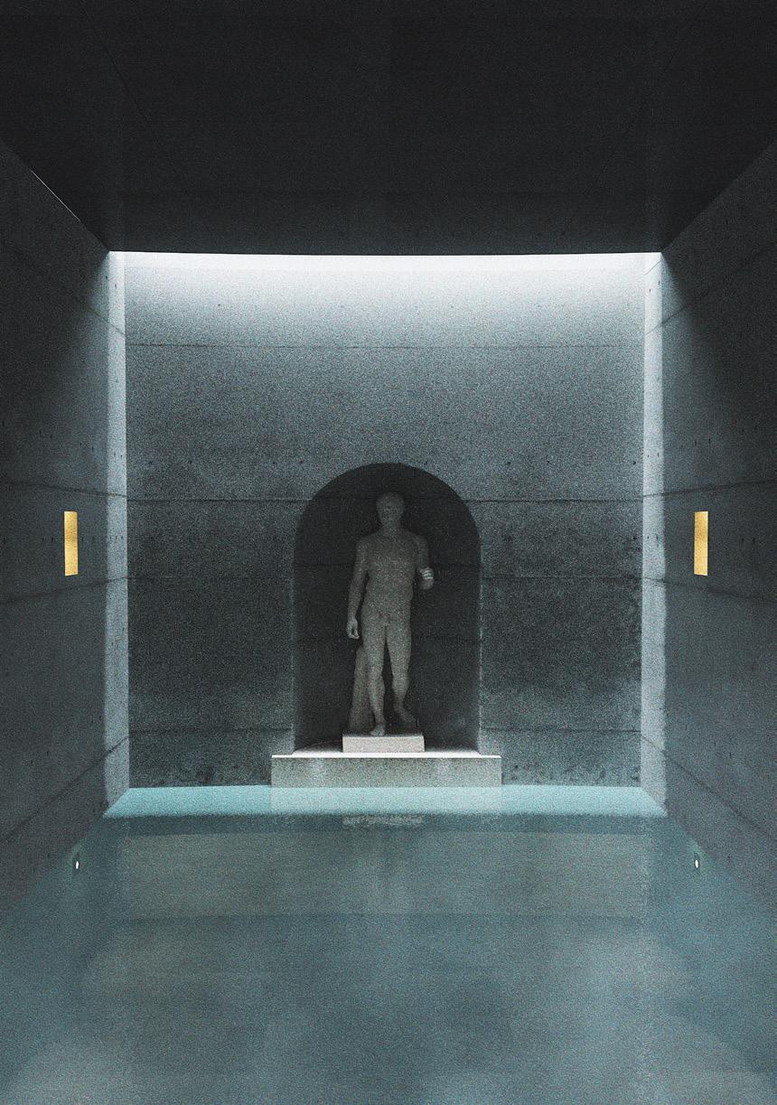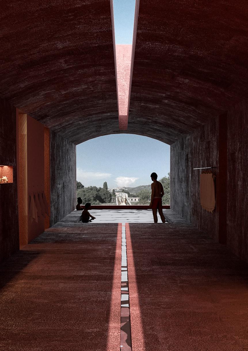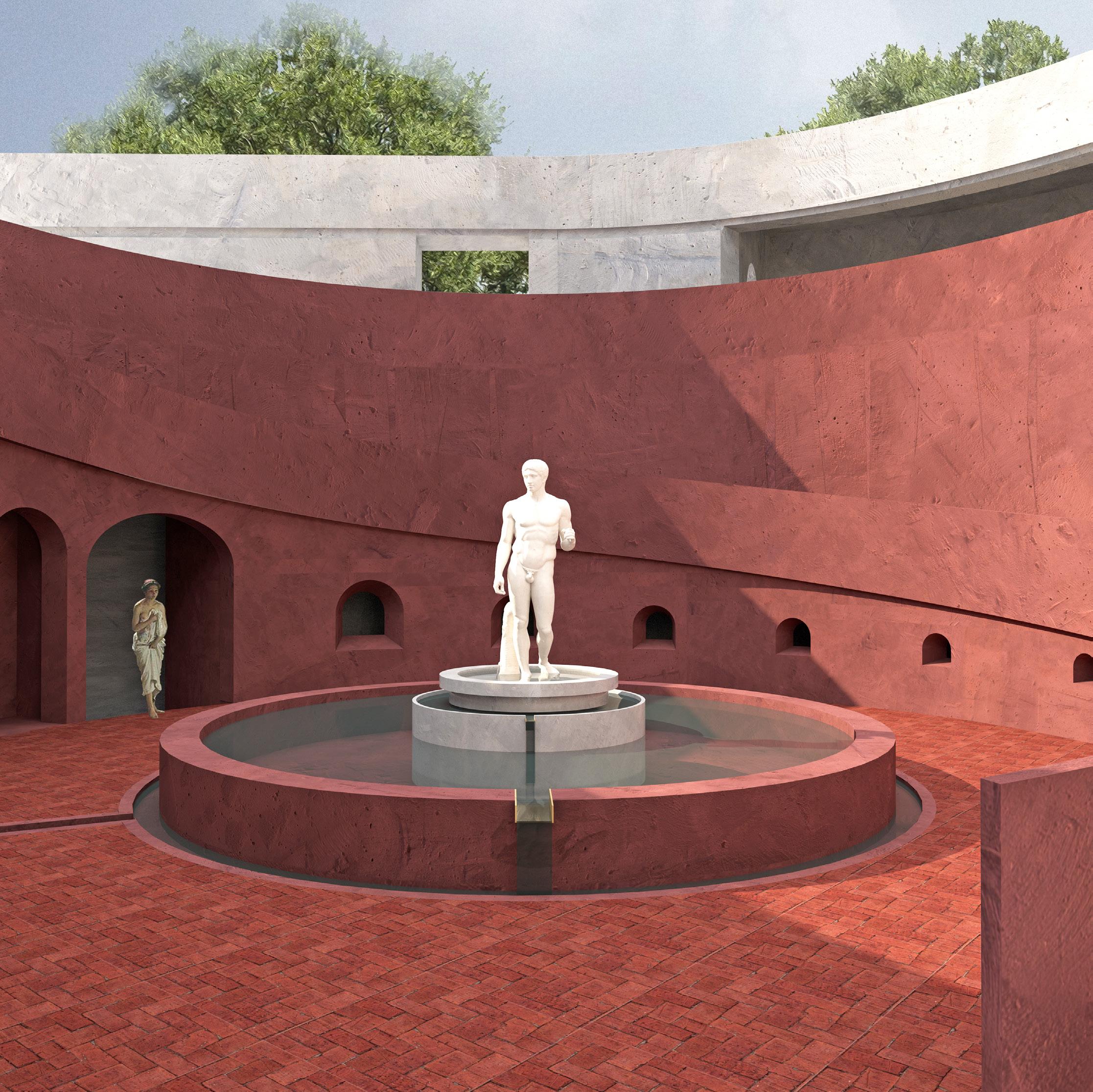 This philosophy finds application in design practices, notably evident in exhibitions at Villa Adriana. Despite its current dilapidated state, we aim to showcase its present ruins by employing the concept of caves. Herein lies an interpretation where "the cave" represents fragmented gaps within the palace structure; it is through these crevices that we hope audiences may perceive alternative beauty inherent within this architectural marvel.