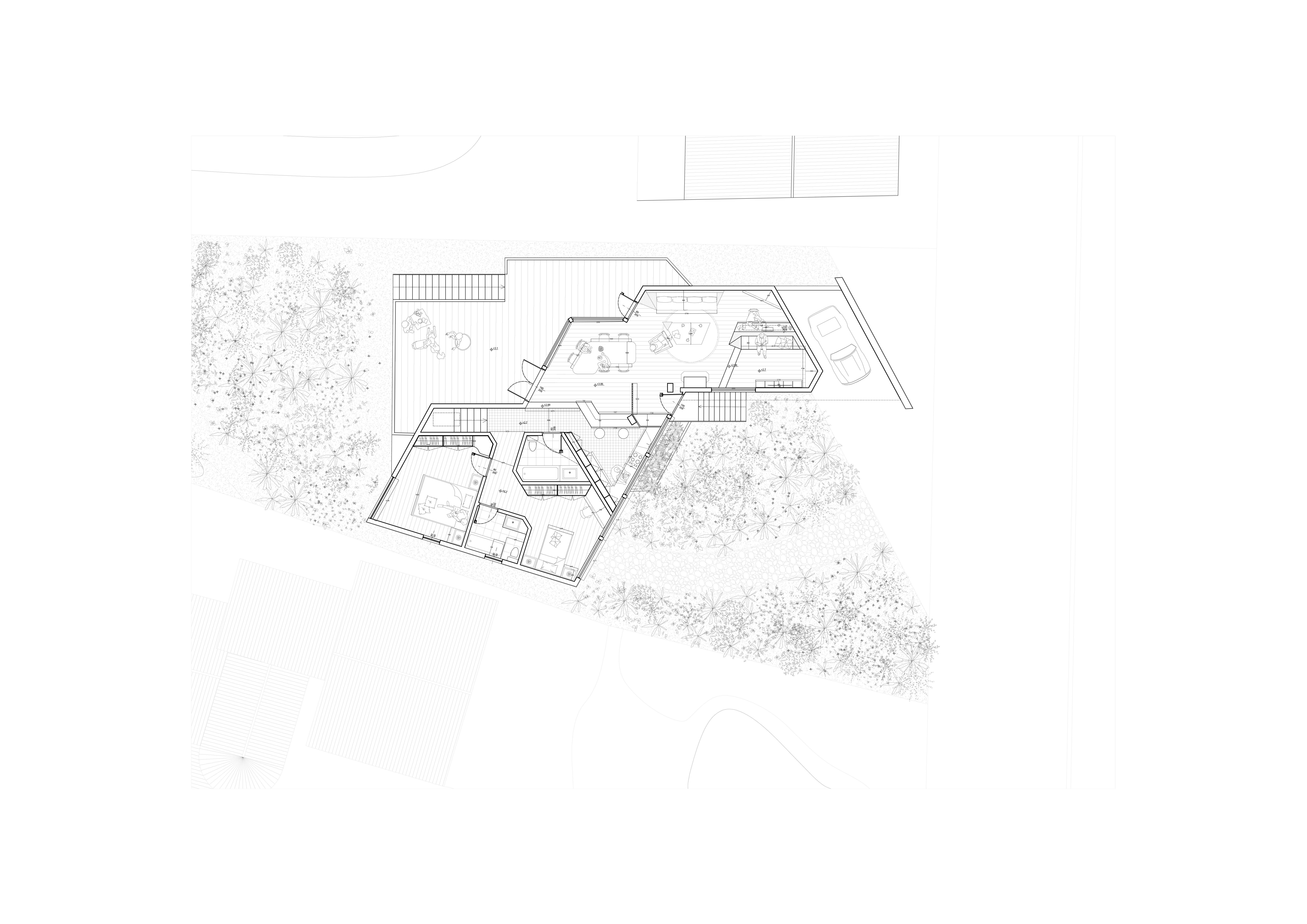 The project mainly explores the optimization and renewal of the internal space of existing buildings. After studying and analyzing the original architectural conditions of William House designed by JOHN LAUTNER in 1952, we reorganized and divided the interior space and functions by using fixed furniture. original first floor plan