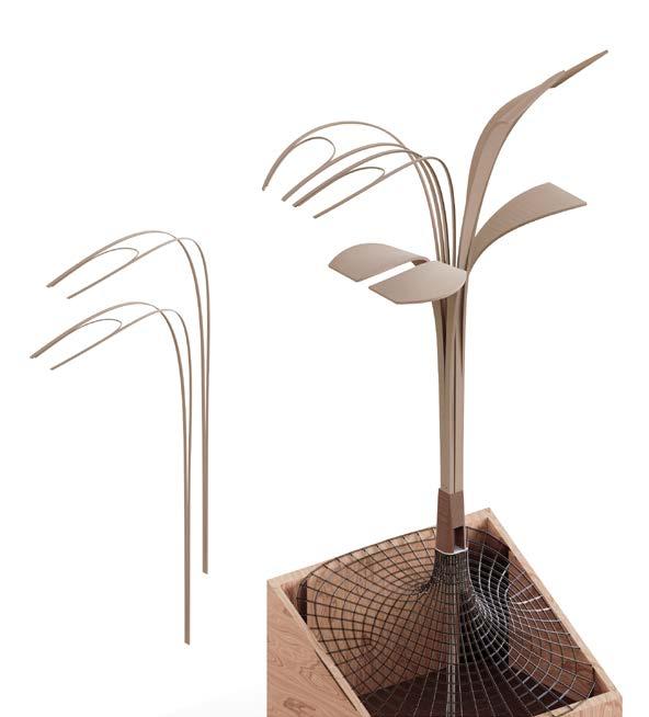 Abstract: As architectural designs increasingly embrace complex, curved forms, traditional wood construction methods often prove inadequate. This project explores creating 3D spatial structures through graded timber laminas, focusing on lamination, treelike structures, and wood bending, while also investigating the application of robotics in fabrication. The main challenge was achieving 3D curvature by dividing the process into two planar bendings. We designed and validated a prototype, demonstrating the potential for sustainable and customizable wood structures in future architectural applications.