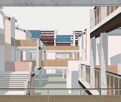 The few remaining walls in the scene have lost their concrete meanings, suggesting that the walls are losing their specific functions in the transitional period of development.