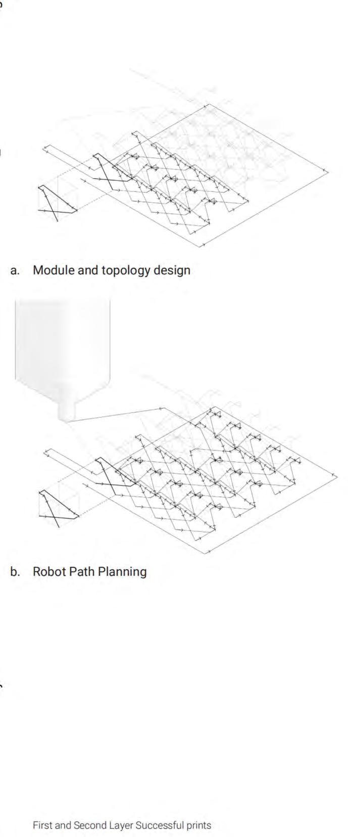 Abstract: Inspired by Robinson Fredenthal’s work, this project integrates robotic 3D clay printing and innovative design to explore combining tetrahedra and octahedra into space-filling systems. We developed complex, structurally supported polyhedral shapes and validated them with full-scale prototypes, including clay mixing, 3D printing, firing, and glazing. The project also incorporated computer vision for creating gradient micro-reliefs and used Arduino and Pixy2 for interactive lighting effects. These explorations provide insights into the application of 3D-printed clay in architecture.