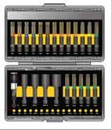 36 x embouts à impact S2. Porteembout magnétique à impact 60mm. 3 x Tournevis à chocs 1/4'' (8mm - 10mm). 2 x adaptateurs d'impact (1/4''-1/2'') 50mm. Bits 32, 50, 75mm. 068216/S