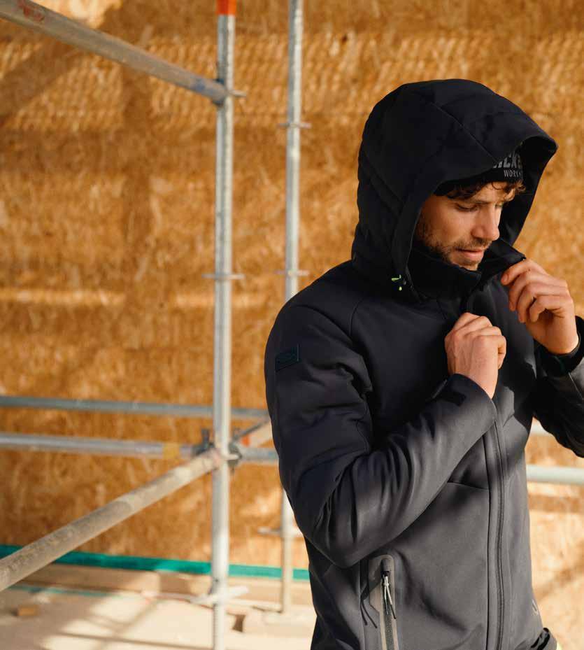 - 19401934/D 401928/D 401988/D 393573/D 393559/D 401462/D 401989/D 401990/D LA MÉTHODE À 3 COUCHES TRANSPORT D’HUMIDITÉ ISOLATION & CHALEUR COUCHE 1 COUCHE 2 COUCHE 3 9444 Ensemble de sous-vêtements Chemise de base chaude et caleçon long en tissu tricoté à 2 couches avec à l’intérieur tissu éponge et un mélange coton-modal à l’extérieur. Matériaux : 58 % polyester, 21 % coton, 21 % modal, 235 g/m2. (XS-XXXL) 97,90€ 8041 (H), 8047 (F) FlexiWork, Sweat-shirt à capuche La doublure en polaire réchauffe par temps froid, tandis que la conception élastique offre mobilité et confort. 100% polyester, 210 g/m2. Couleurs variées. (XS-XXL/XXXL) 75,90€ 71,90€ 1102 AllroundWork, Veste isolante imperméable 37.5® Veste de travail imperméable et isolante qui offre un confort quotidien dans les environnements froids et humides. Principaux matériaux : 100 % polyamide ; 220 g/m2. Rembourrage : 100 % polyester 37.5®, 120 g/m2. Doublure : 100 % polyamide ; 65 g/m2. Tissu de renfort : 100 % polyamide CORDURA®, 305 g/m2. Couleurs variées. (XS-XXXL) 203,90€ 1229 AllroundWork, Veste Softshell à capuche Veste de travail Softshell résistante à l’usure avec capuche, conçue pour une utilisation toute l’année. Matériau principal : 100 % polyester, 265 g/m2. Renforts : 100 % polyamide en CORDURA®, 205 g/ m2. Couleurs variées. (XS-XXXL) 130,90€ 9206 Chaussettes en Cordura/laine Chaussettes très résistantes en laine de mérinos et Cordura ®. 36% Polyamide, 19% laine de mérinos, 19% acrylique, 15% polypropylène, 7% Cordura® et 4% élasthanne. (37-40,41-44,45-48) 25,90€ 9579 Weather Dry Gloves Gants idéals par mauvais temps. 35% Polyamide, 27% Polyester, 20% Polyuréthane, 8% Caoutchouc, 5% fil réfléchissant, 5% Polyéthylène. (7-11) 50,90€ 9035 Bonnet avec logo Bonnet chaud et confortable conçu pour utilisation quotidienne par temps froid. 100% acrylique. Couleurs variées. 15,90€ 8047(Hommes) 8041(Femmes) 2 Paires PROTECTION CONTRE LES INTEMPÉRIES