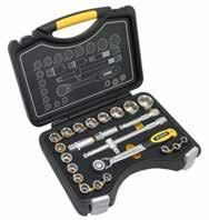 Cliquet à 72 dents, poignée bi-compo, 18 x 6pts douilles super lock 10-32. 1 x 5" barre d'extension de la tête vacillante, 1 x 10" barre d'extension