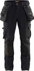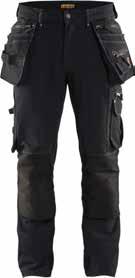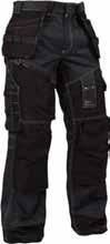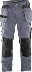 65% polyester, 35% katoen, 280g/m². Gereedschapslussen In Cordura. Verstelbare rugelastiek en antislip taillezoom. Kruis in stretch. Stretch inzetstukken. Reflecterende details. Maten: 38 t/m 54. Grijs. 365954-62/D Zwart. 365943-51/D