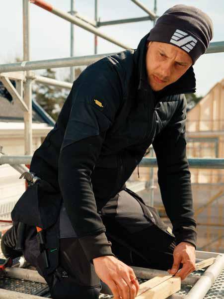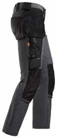 65% polyester, 35% katoen, 280g/m². Gereedschapslussen In Cordura. Verstelbare rugelastiek en antislip taillezoom. Kruis in stretch. Stretch inzetstukken. Reflecterende details. Maten: 38 t/m 54. Grijs. 365954-62/D Zwart. 365943-51/D