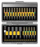 36 x S2 slagbits. 60, magnetische slagbithouder. 3 x 1/4'' slagschroevendraaier (8, - 10,). 2 x Impact-adapters (1/4''-1/2'') 50. Bits 32, 50, 75. 068216/S SET IMPACT - 39STKS S2, 1/4" x 30mm en 1/4" x 50mm (PH, PZ, Hex, SQ, SL, Torx), bithouder 60mm en magnetische bitshouder. 339349/S