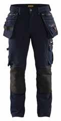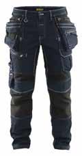 Duurzame en flexibele denim werkbroek met holsterzakken en slim fit design. Basis: 82% katoen, 14% polyamide, 3% polyester, 1% elastaan, 376 g/m2. Contrast: 92% polyamide, 8% elastaan, 250 g/m2. Versterking 1:100% polyamide CORDURA®, 205 g/ m2. Versterking 2: 100% polyester CORDURA® , 320 g/m2. (44-58)