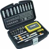 met 72 tanden en bi-compo handgreep. Super locksockets van 18 x 6pts 10-32. 1 x 5" verlengkop met wiebelende kop, 1 x 10" verlengkop met wiebelkop, 1 x T-bar adapter, 2 bougiedoppen 16 + 21mm.