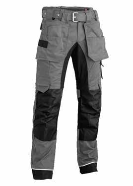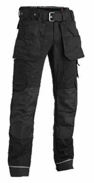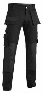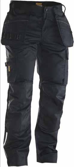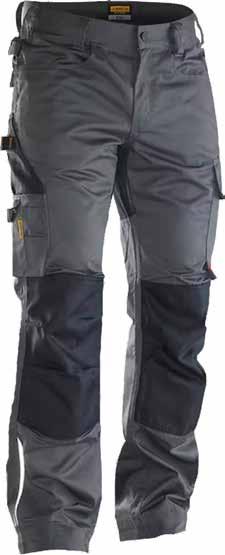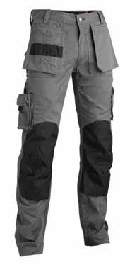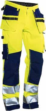 65% polyester, 35% coton, 280gr/m². Poches d'outils en Cordura. Taille antidérapante et réglable. Entrejambes en stretch. Insert en stretch. Détails réfléchissants. Tailles: 38 à 54.