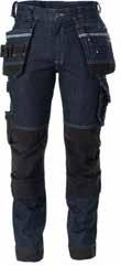 65% polyester, 35% katoen, twill, 300g/m². 4-way stretch stof. Slim fit. Verstelbare Cordura®Stretchkniezakken. Zakken en zoom versterkt met Cordura®. Enzyme stonewashed jeansstof. Drienaaldstiksel. Stiksels in contrastkleur.