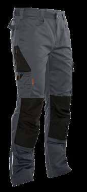 240 g/m2 • Holster-zakken met extra compartiment en extra zak met rits • Achterzakken met klep en klittenbandsluiting • Beenzak met extra compartiment en klep met klittenbandsluiting • Meterzak met mescompartiment
