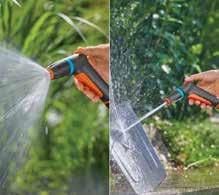 4 types de jets réglables, adaptés à différentes applications. Poignée avec gâchette verrouillable pour un usage confortable et sans fatigue. Résistant aux UV et au gel occasionnel. Comprend pistolet Classic, raccord Aquastop, raccord rapide et nez de robinet 3/4’’.