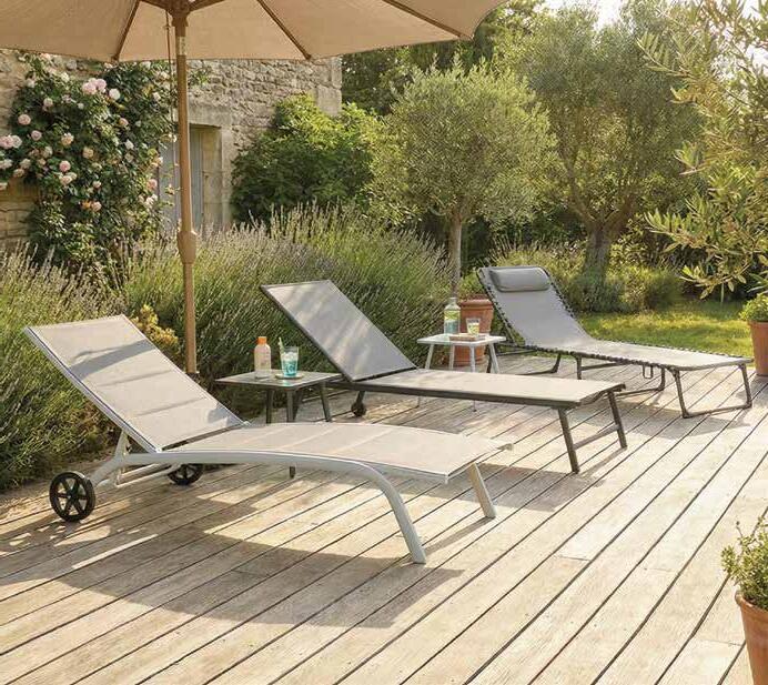 Cadre en aluminium. Taupe / sable 2 fauteuils réglables L73x l84 x H101cm