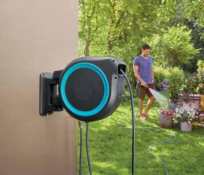Un rangement parfait du tuyau d’arrosage. Peut être pivoté à un angle de plus de 180°. Se verrouille automatiquement à la longueur souhaitée. Prêt pour une utilisation immédiate. Technologie RollControl: assure une rétraction lente et sûre, quelle que soit la distance de déroulement du tuyau. Résistant aux UV et au gel 25m - 13mm - 623176/D / 35m - 13mm - 623177/D - 219,95€