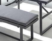 Tafel met polywood blad L110 x B30 x H62cm. Met kussens 10cm 220gr/m² donker grijs.