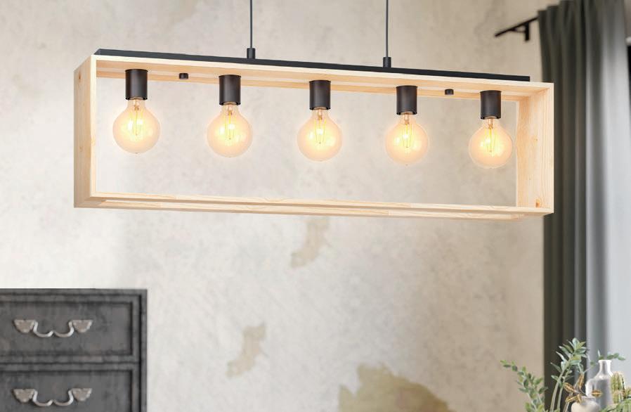 4 ‘Famborough’ Acier, bois. Suspension* 9995€ /144 ,95* €5x E27. L100 x l16 x H110cm. 130627/D Eclairage * Ampoules non incluses. 3x E27. L78 x l21 x H110cm. 130598/D 14995€ /188 ,95* €11595€ SUSPENSION ‘HORNWOOD’* Acier, noir, bois. 130598/D / 155,95 * € 4x E27. L110 x l18 x H110cm. 130735/D