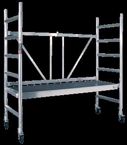 1,85 x 0,75 m • Werkhoogte 2,70 m • 4 wielen met rem 125 mm • Voorzien van 4 gemonteerde noppen • Automatische borgpen tijdens montage • Hogere reling voor meer stabiliteit en veiligheid 351061/D