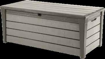 L145 x D69.7 x H60.3m • Met houtlook! • Functioneert ook als een bankje dat plaats biedt aan twee volwassenen • Met handgrepen: eenvoudig te verplaatsen! • Weerbestendig • Taupe