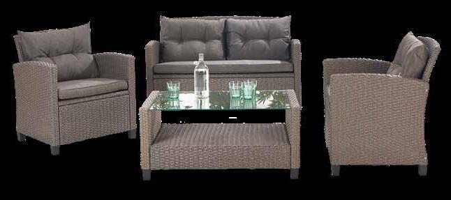 2 949 00 1099 00 119 00 149 00 695 00 59 95 79 95 handyhome.be ook op EN ALLES WORDT MOGELIJK TAFELLAMP LED 'MANNERA' USB 2.2W • 200lm • 3000K • Ø11 x H34cm • IP54 • Alu, staal, kunststof • Verschillende kleuren 130187/D PARASOLTEGEL 25KG 4STKS 50 x 50 x 7cm 695283/D /4stks VASTE LAGE PRIJS LOUNGESET 'VALENCIA' Aluminium frame & polywood • Bank 3-zits L226 x B79 x H64.5cm • 2 banken 1-zit L75 x B79 x H64.5cm • Tafel L110 x B35 x H56cm • Kussens inbegrepen 680833/S 299 00 349 00