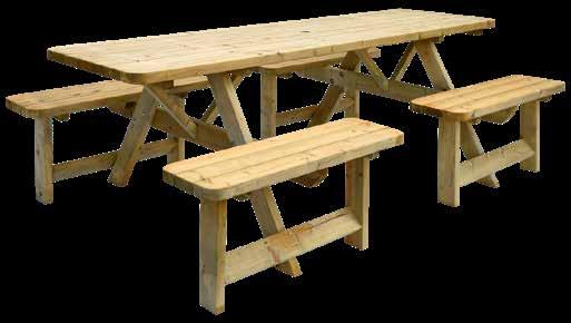 L240 x l155 x H78cm • Pin nord-européen FSC - imprégné en profondeur, épaisseur 42 mm • Grande table qui peut accueillir 8 personnes • L'ensemble se compose d'un plateau de table avec 4 bancs qui sont montés sur les pieds de la table