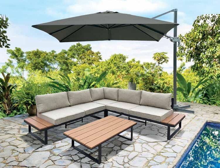 4 64 95 84 95 139 95 159 95 124 95 144 95 handyhome.be également sur ET TOUT DEVIENT POSSIBLE PARASOL LED 'AVIGNON' 3X3M Mât en aluminium 53 x 77mm • Toile polyester 250g/ m² • 8 baleines en alu 14x24mm • Eclairage LED intégré de 1.5W , alimenté grâce à l'énergie solaire • Inclinable et rotatif à 360° • Anthracite 680246/S LIT RELAX 'CURACAO' Multiposition, pliable • Alu & textilène • L132 x l63 x H95cm • Anthracite 694619/D LIT DE JARDIN 'GRENADA' Alu & textilène rembourré • Sur roues • Dossier réglable • Anthracite • L195 x l62 x H94cm 694616/D LIT DE JARDIN 'COLUMBIA' Réglable • Alu & textilène • L193 x l61 x H92,5/30cm • Noir 694624/D SET DE JARDIN 'MONACO' Alu, anthracite • L 207/263 x l100 x H76cm • Plateau en céramique 680150/D + 6 CHAISES EMPILABLES 'JUDITH' Alu & textilène gris • 54 x 56 x 89cm 680152/D PIED POUR PARASOL 90kg • 80 x 80 x 10cm • Sur roues 695282/D 1375 00 1695 00 149 00 179 00